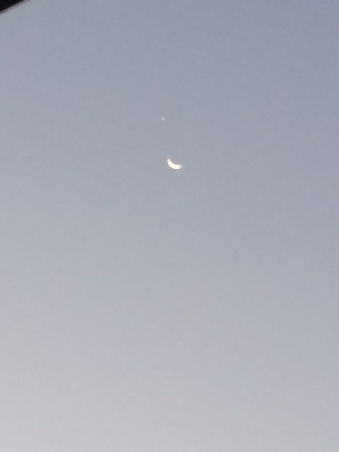 明けの明星 Posted on 2015年10月10日 by d-bashifccat 昨日、今日と、早朝に東南の方角に綺麗な三日月と金星が・・・。 写真はうまくとれていませんが(目を凝らして金星を見てください)、ほの暗い夜明け前の空に幻想的な風景でした。