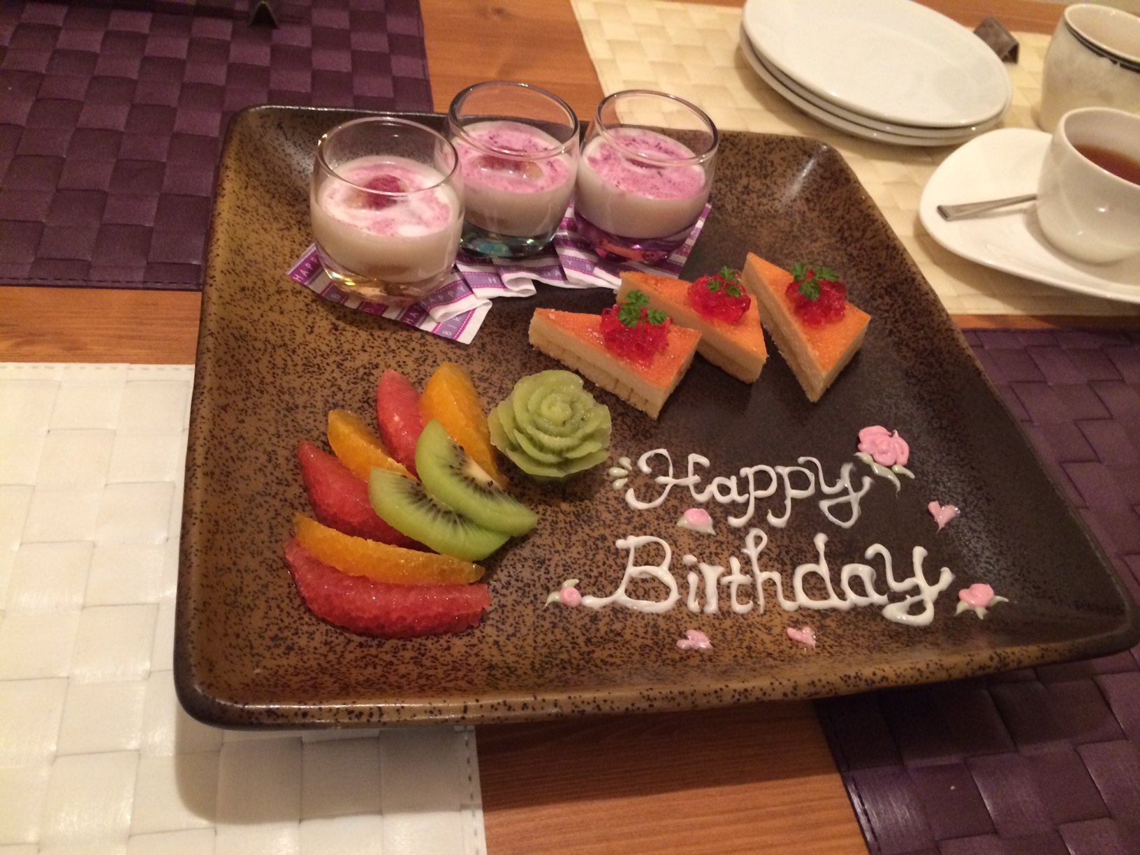 お味がとても美味しくて、家族でその味に癒されにお伺いしている創作中華の「モン・レーウ゛」さんに昨晩お伺いしたところ、最後に、サプライズのこんなデザートプレートが!!「先日は先生のお誕生日でしよね。」と。院長は感激しきり。シェフと奥様のあたたかい心遣いにほんわかさせられながら、美味しくデザートまでいただきました。